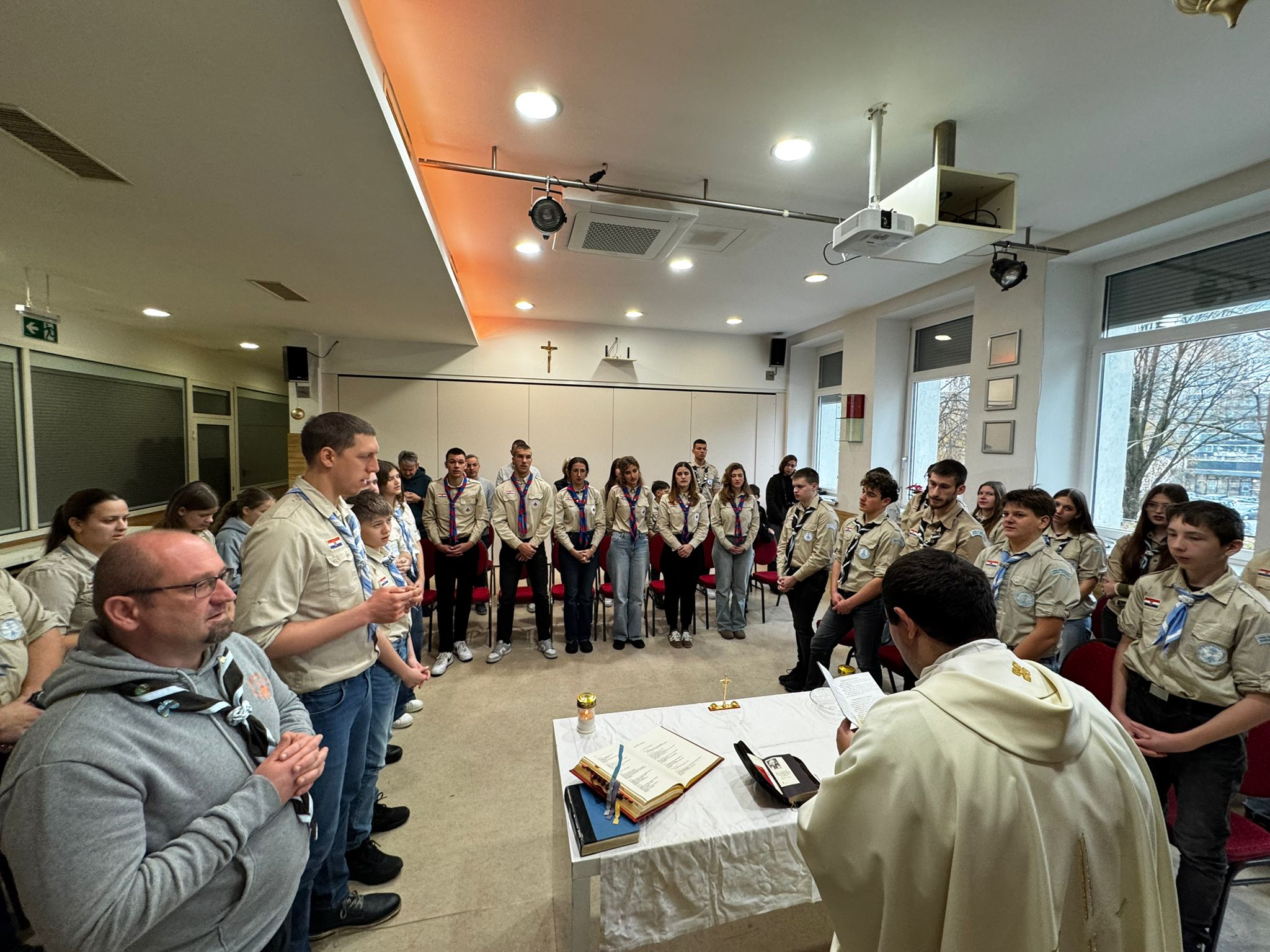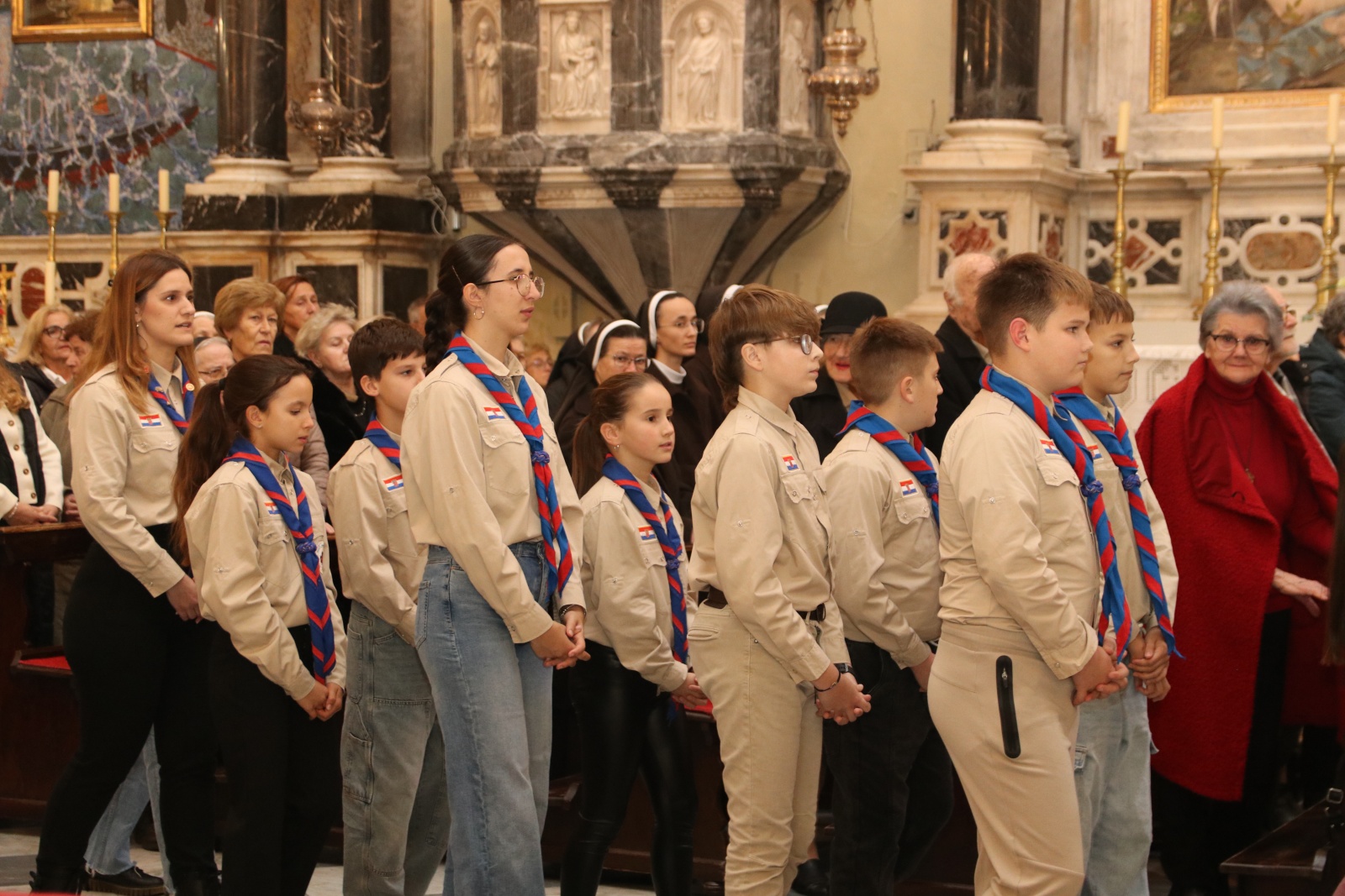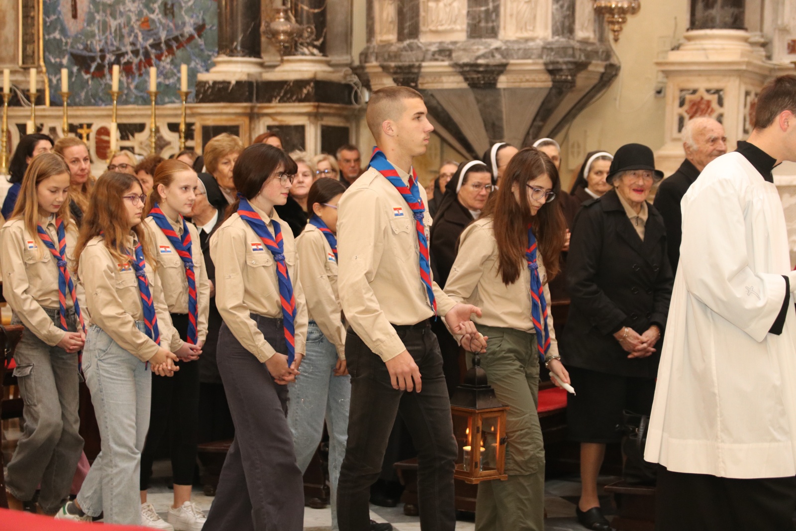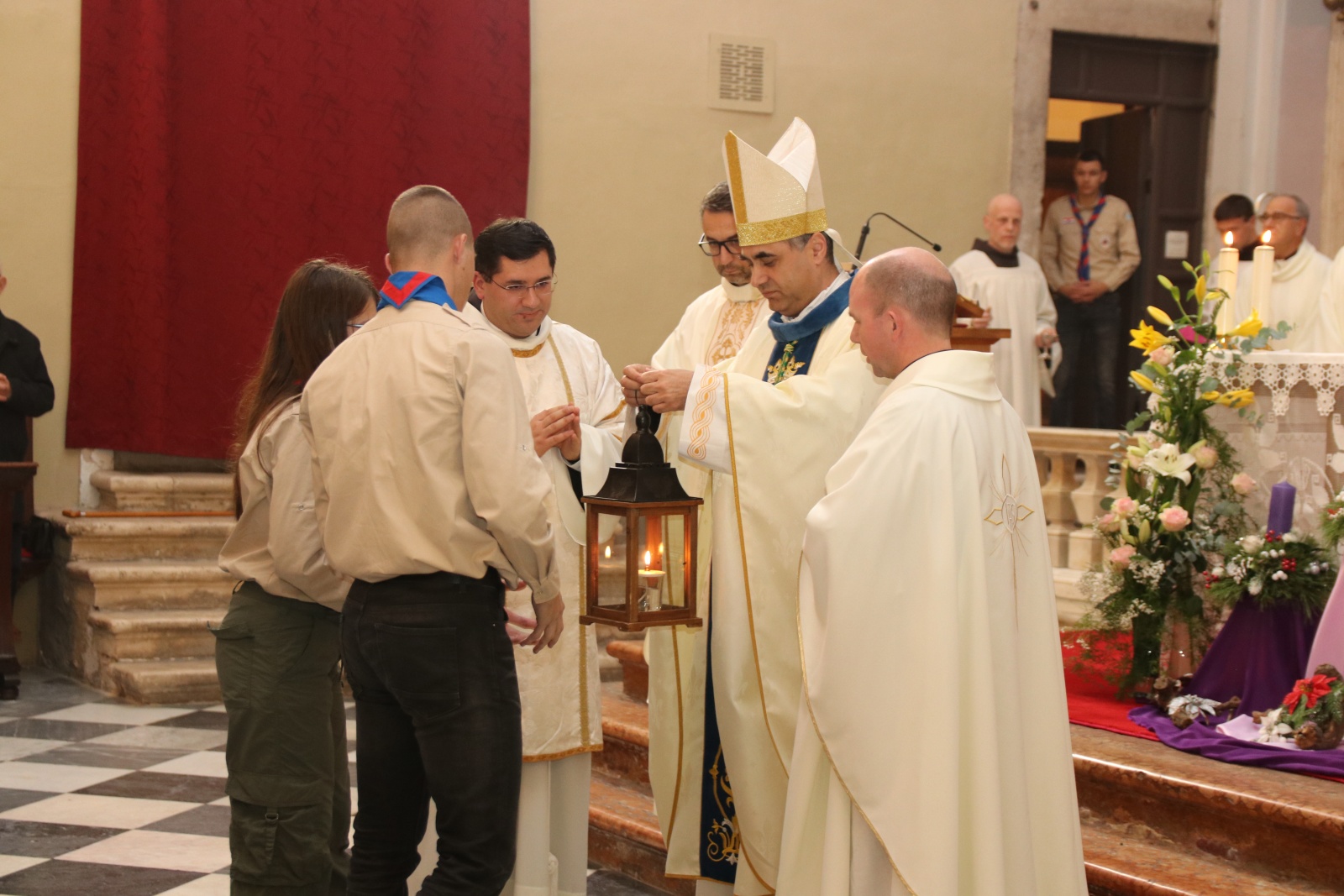 Šibenski, riječki i dubrovački katolički skauti prije odlaska na glavnu ceremoniju predaje Betlehemskog svjetla zajedno su slavili Svetu misu koju je predvodio duhovnik riječkih katoličkih skauta don Nikola Luketić uz asistenciju đakona don Tomislava Sikavice.